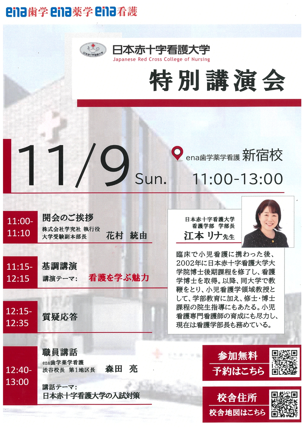 今回の日本赤十字看護大学とのコラボイベントは、看護学部学長の江本リナ先生に来ていただきます!