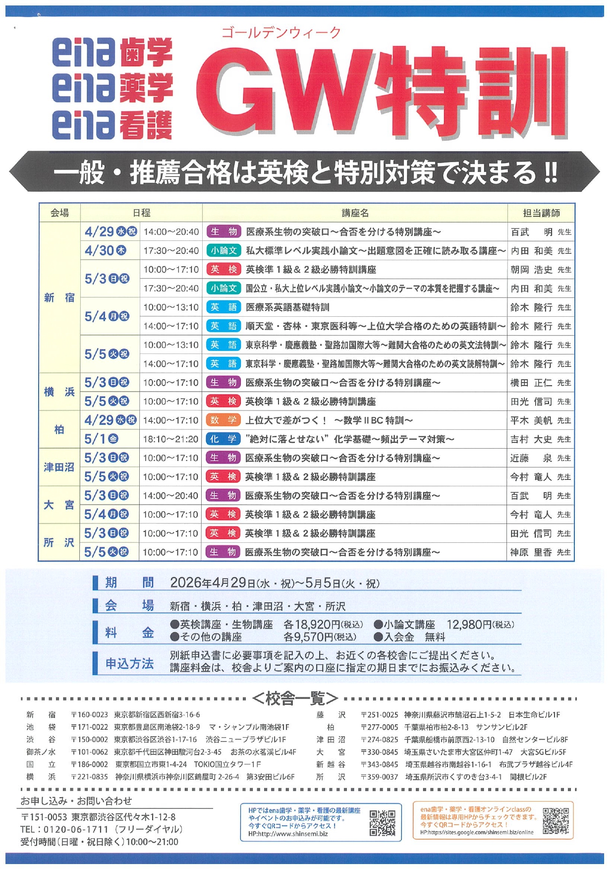 残念ながらGW特訓は渋谷校での講座はありませんが、他の校舎の人たちと共に講義を受けることによって、新たな刺激を得ることができ、モチベーションのUPが期待できます。