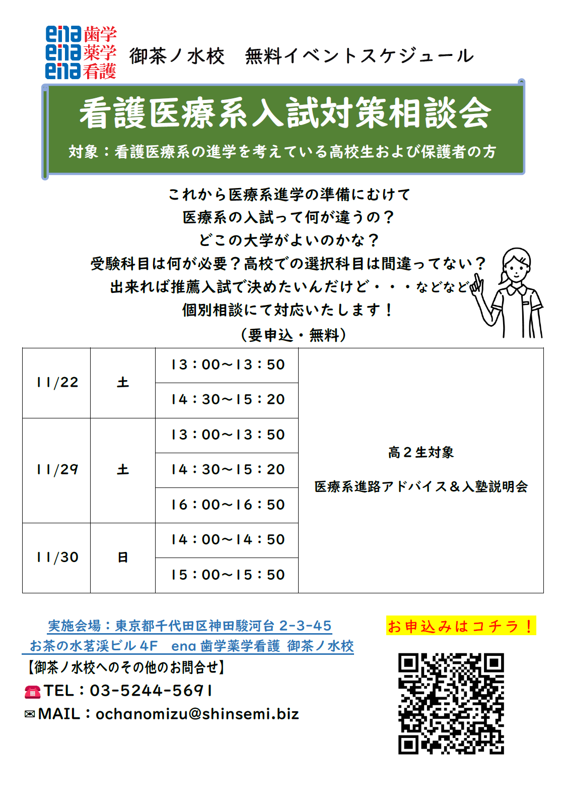 ena看護御茶ノ水校には、医療系入試に精通した校長や講師、