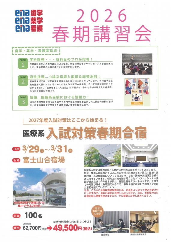 つまり、推薦入試を受ける方も一般入試を受ける方も春から勉強のサイクル作り、特殊な医療系入試対策が始められちゃう大大大チャンスです!!!!!