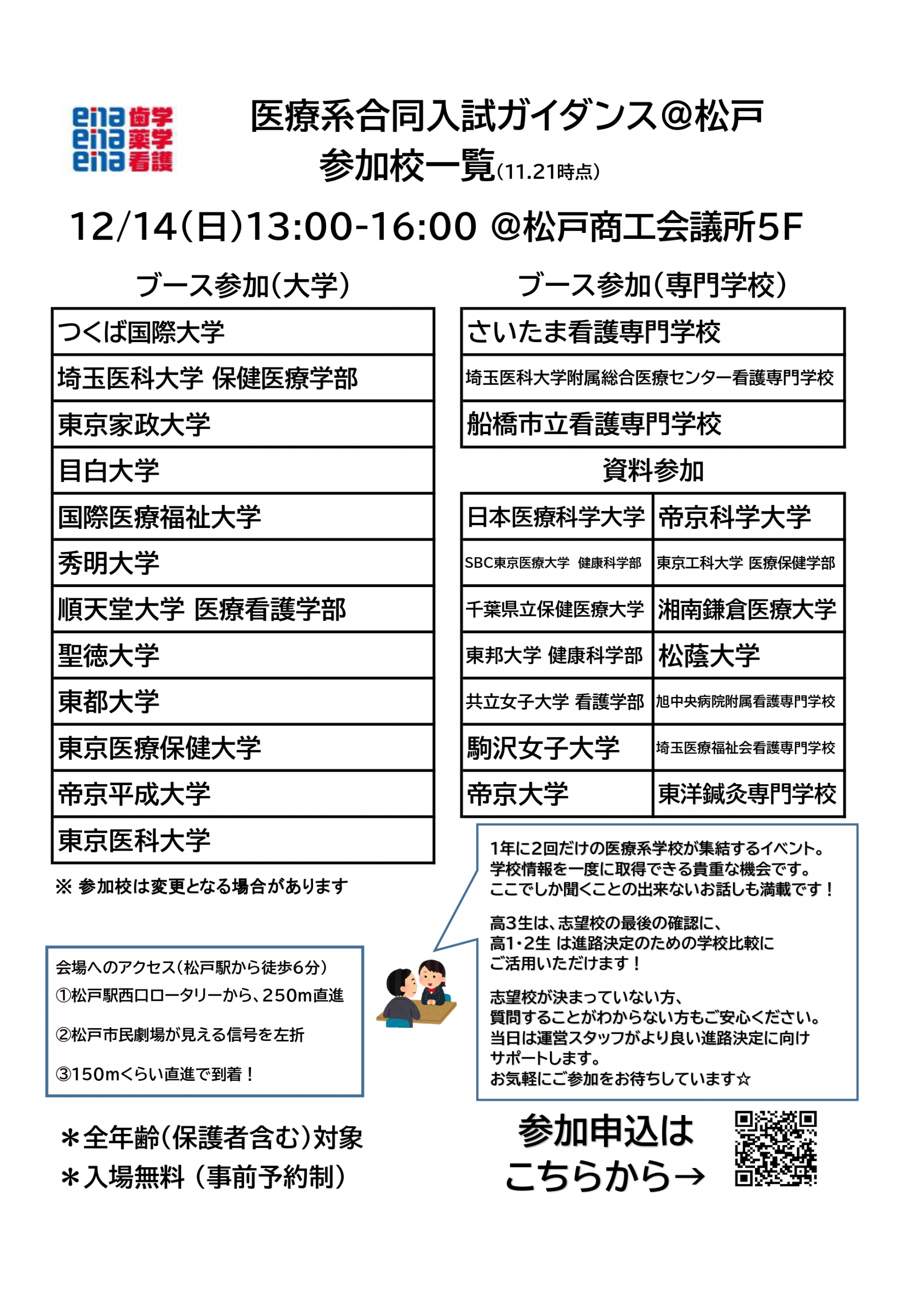 松戸会場での日時や参加校、イベント申込みは下記にございますのでご確認ください。