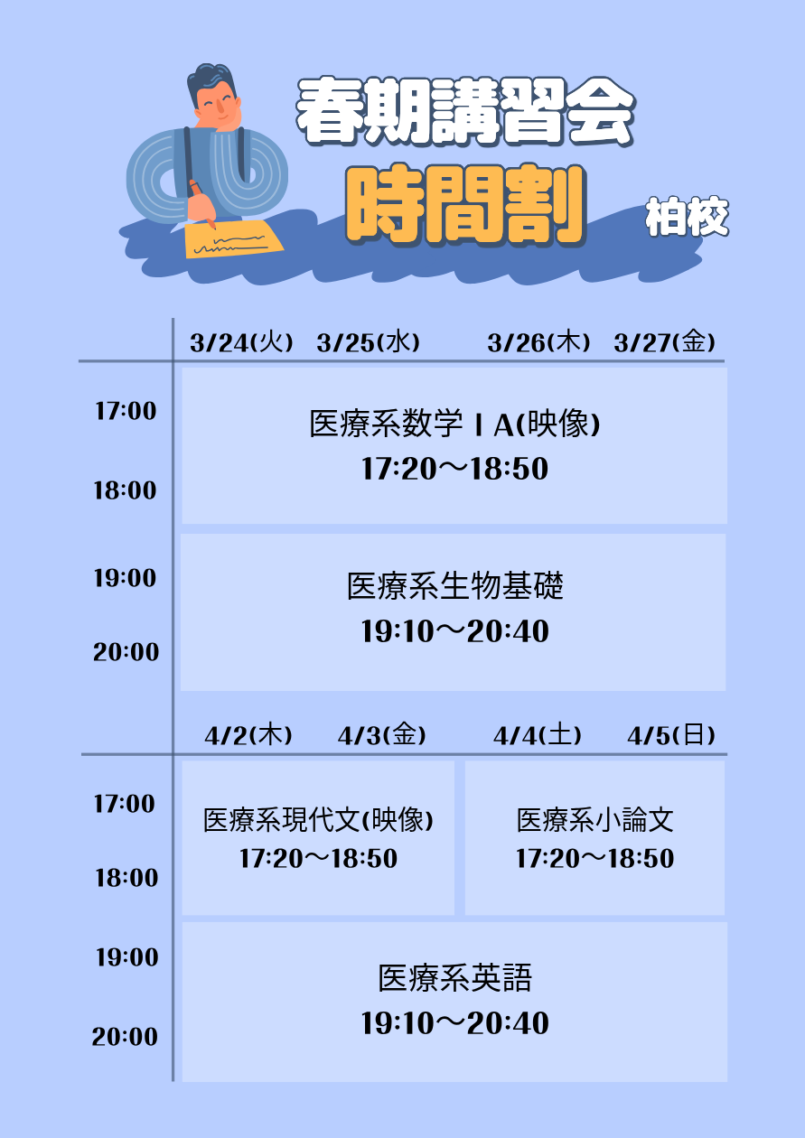 こんにちは、ena看護柏校です!新高3生対象の春期講習会が3/24(火)より始まります。
